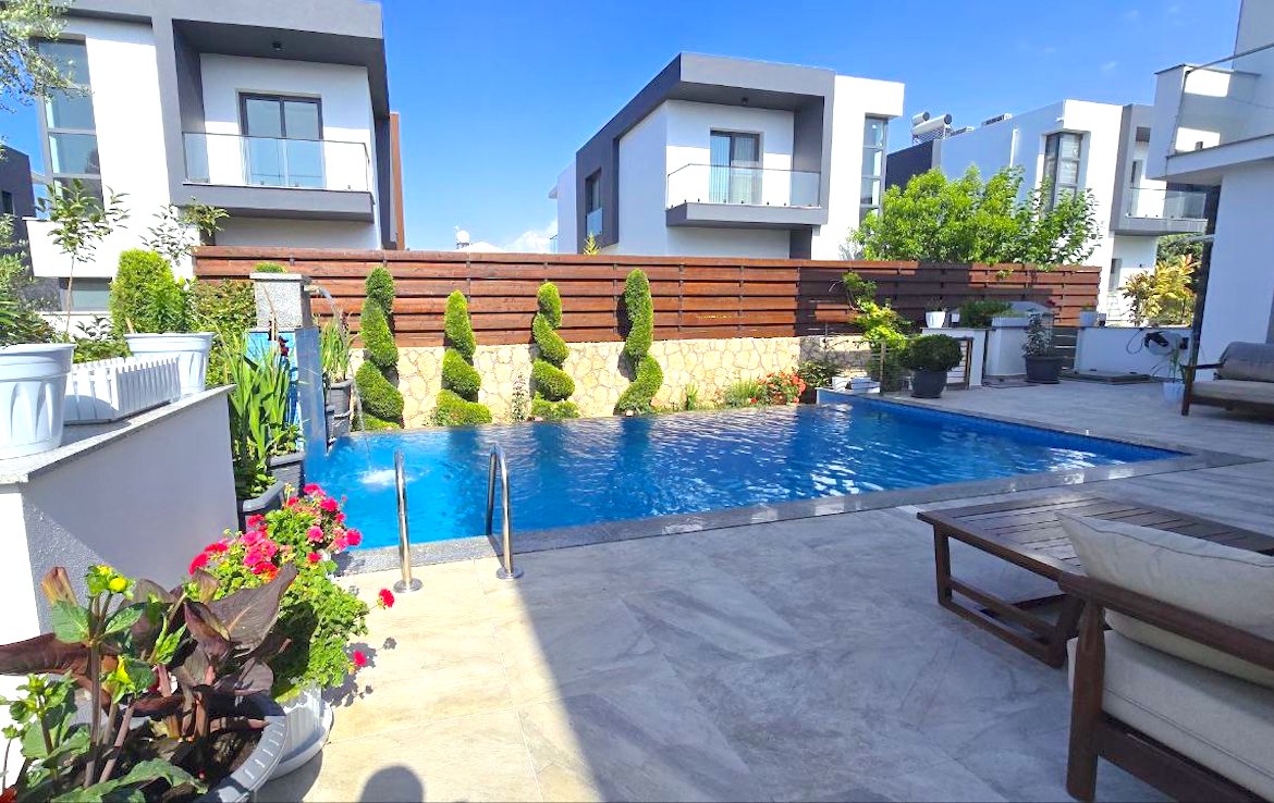 ویلای جدید لوکس برای فروش در روستای زیبای چاتالکوی، تنها 50 متر با جاده اصلی که اسنتپه و گیرنه را به هم متصل می کند، فاصله دارد. این ویلا در یک مجتمع دروازه دار متشکل از چهار ویلای منحصر به فرد واقع شده است و با آرامش و فضای سبز احاطه شده است. این ویلا دارای دو پارکینگ است و دسترسی به قلمرو از طریق یک مانع فراهم می شود که هم با کنترل از راه دور و هم با تلفن قابل باز شدن است.
